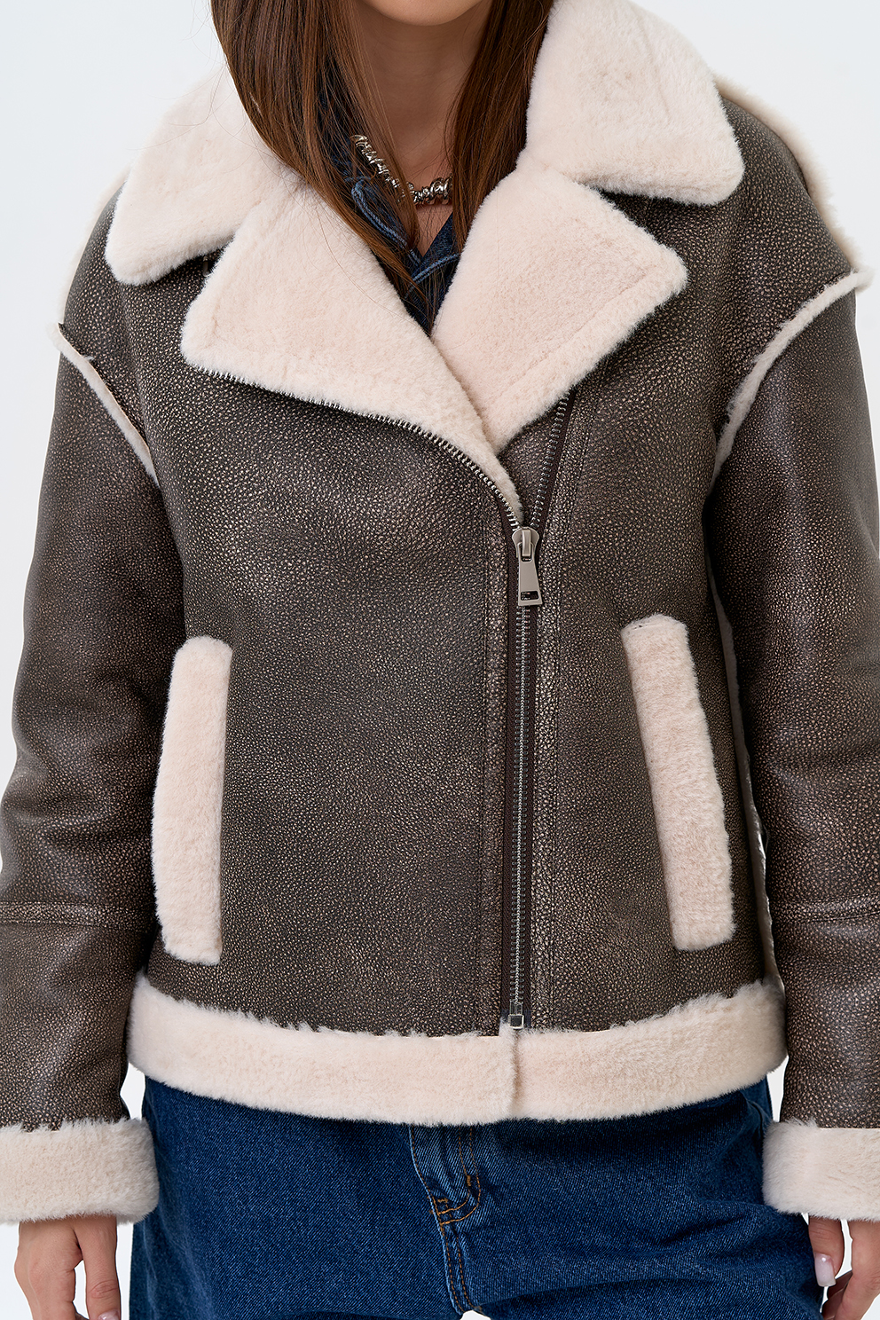 Вид ворота - отложной, отделка эко мех белый