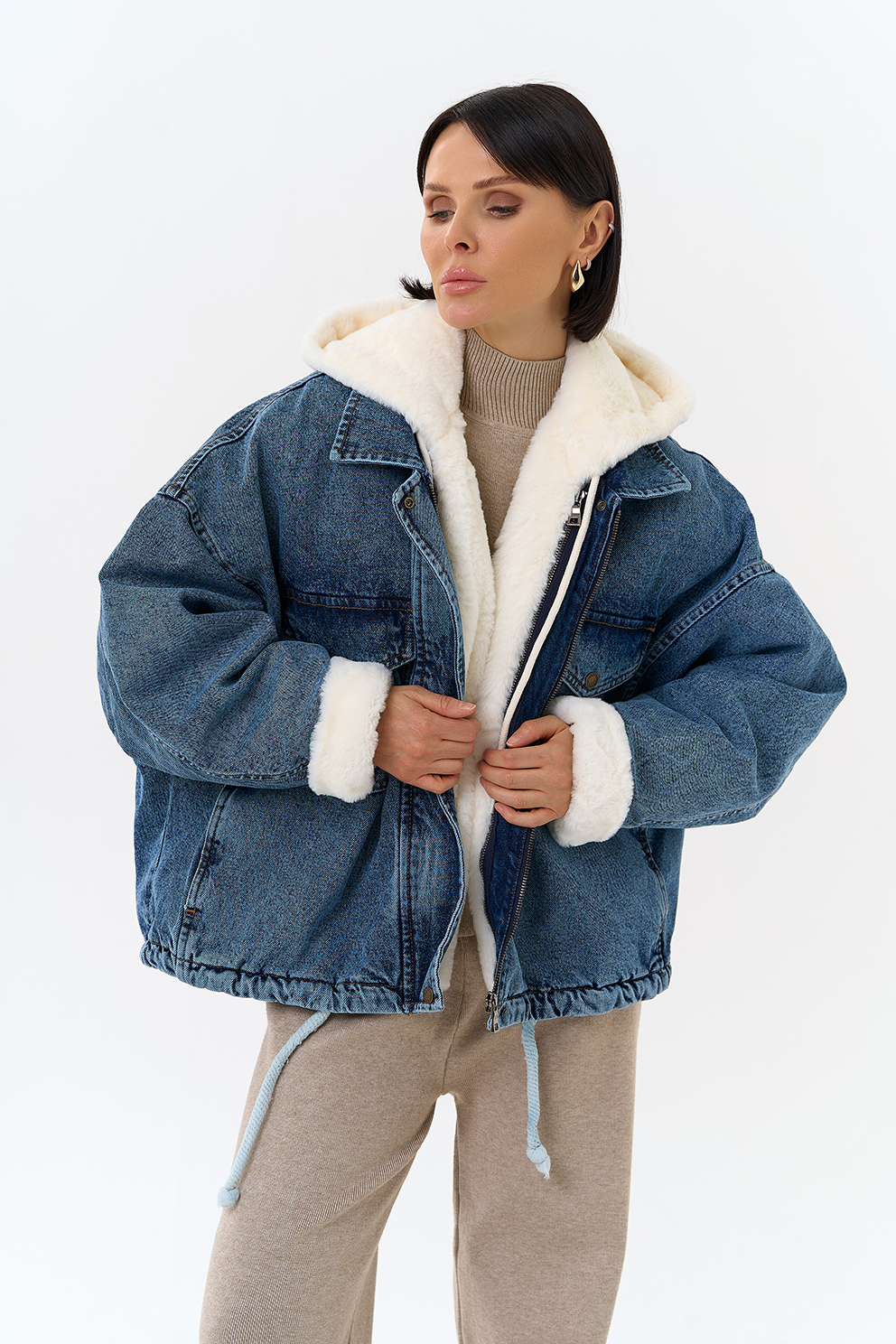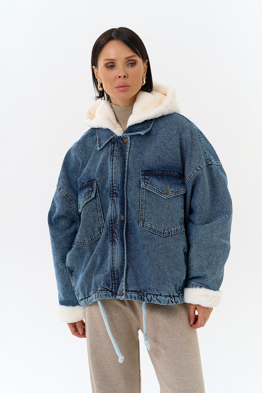 Крой воротника - съемный капюшон, отделка эко мех