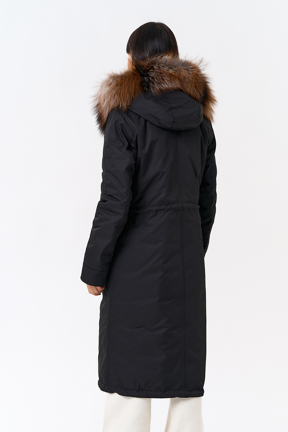 Крой воротника - капюшон, отделка чернобурая лиса Otoban, овчина